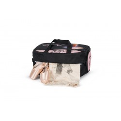 This ballet bag has an adjustable and detachable shoulder strap and 2 hand straps.