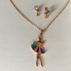 Tutu is ingekleurd in zalmrose, lichtblauw, donkerblauw en groen email